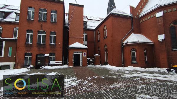 W celu usprawnienia wytwarzania ciepłej wody do celów użytkowych wymieniono stary zasobnik, na nowy energooszczędny, który pozwala na efektywniejsze wykorzystanie istniejących kolektorów. Główne źródło ciepła zastąpiono powietrzną pompą ciepła z buforem oraz zastosowano regulację centralną i miejscową w postaci zaworów termostatycznych. Dodatkowo wykonano instalację fotowoltaiczną o mocy 15,84 kWp w celu zwiększenia autokomsumpcji energii elektrycznej dzięki czemu zwiększono udział odnawialnych źródeł energii z niecałych 2% do 96%. Przeprowadzone prace pozwoliły na zmniejszenie zapotrzebowania na energię o 84,6%