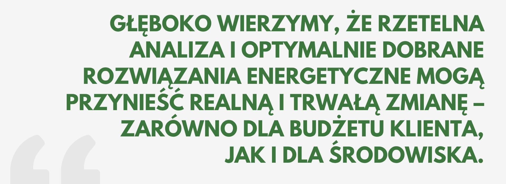 Innowacyjność jest dla nas nie hasłem, lecz codzienną praktyką. Śledzimy najnowsze doniesienia branżowe, inwestujemy w nowoczesne narzędzia i technologie oraz jesteśmy otwarci na rozwiązania, które jeszcze nie stały się standardem rynkowym. Wierzymy, że gotowość do podejmowania ryzyka i konsekwentne wdrażanie nowych idei to warunek tworzenia usług, które realnie zmieniają efektywność energetyczną budynków i przedsiębiorstw.